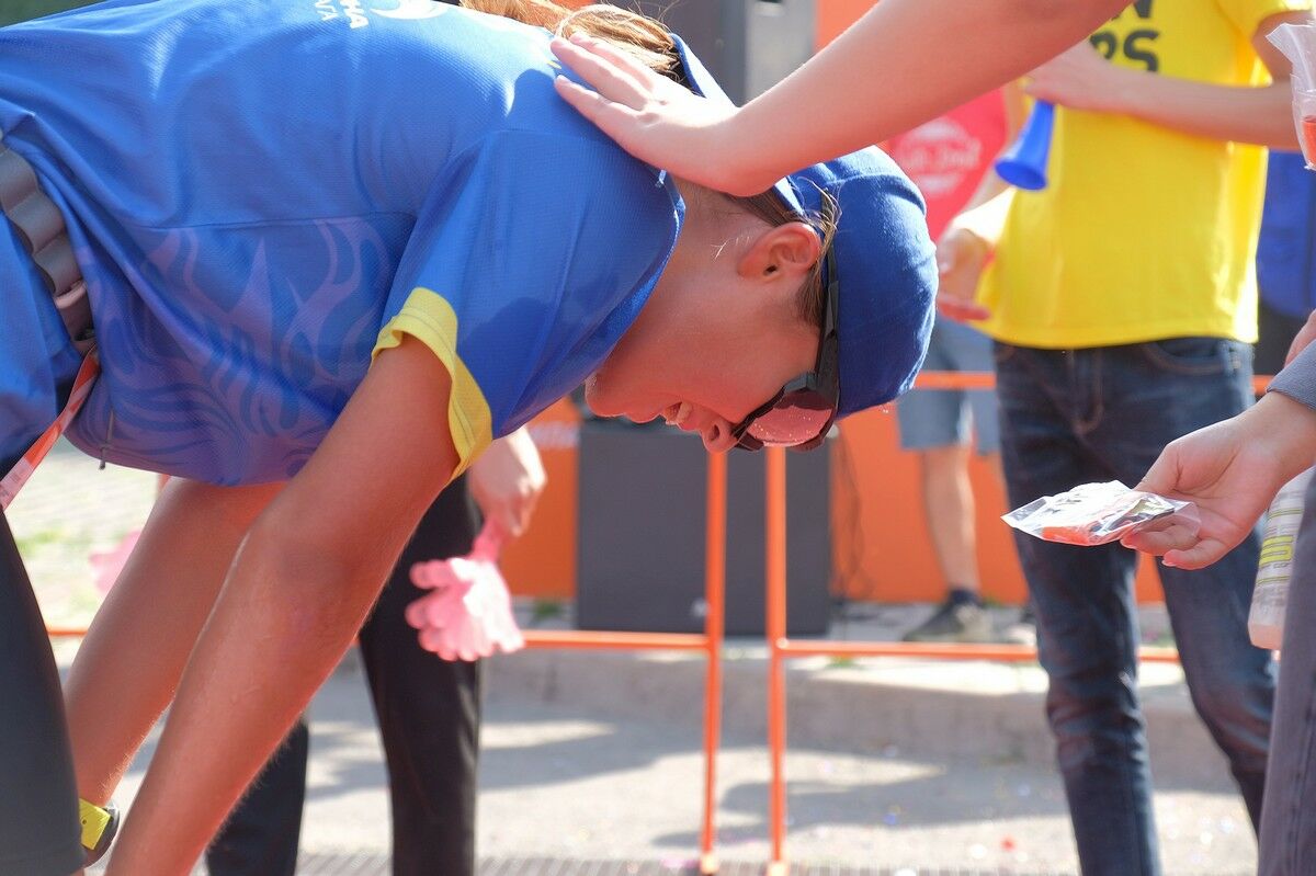 Не скучали и бегуны: на каждом этапе дистанции их сопровождали бодрящие ритмы, а не тяжелое дыхание соперника за спиной. Болельщики, поднимающие настроение спортсменам с помощью барабанов, пищалок и веселых плакатов, растянулись по всей трассе на безопасном расстоянии друг от друга. Из-за карантинных ограничений забег не раз переносили. Чтобы он все же состоялся, пришлось соблюсти все меры предосторожности: вход строго по приложению Ashyq, раздельные старты для спортсменов, которых было больше 500 человек. Это, конечно, растянуло время состязания, зато дало дополнительный уровень безопасности.