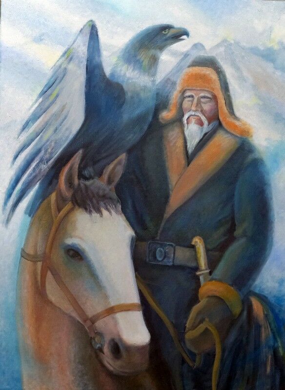 - Устаю от графики, берусь за живопись, надоедают кисти, сажусь за скульптуру. Так отдыхаешь. Эти картины - как воспоминания о встреченных мной в детстве аксакалах, о рассказах пожилых людей, о том, что прочел я в книгах по истории. В них есть дух тенгрианства.