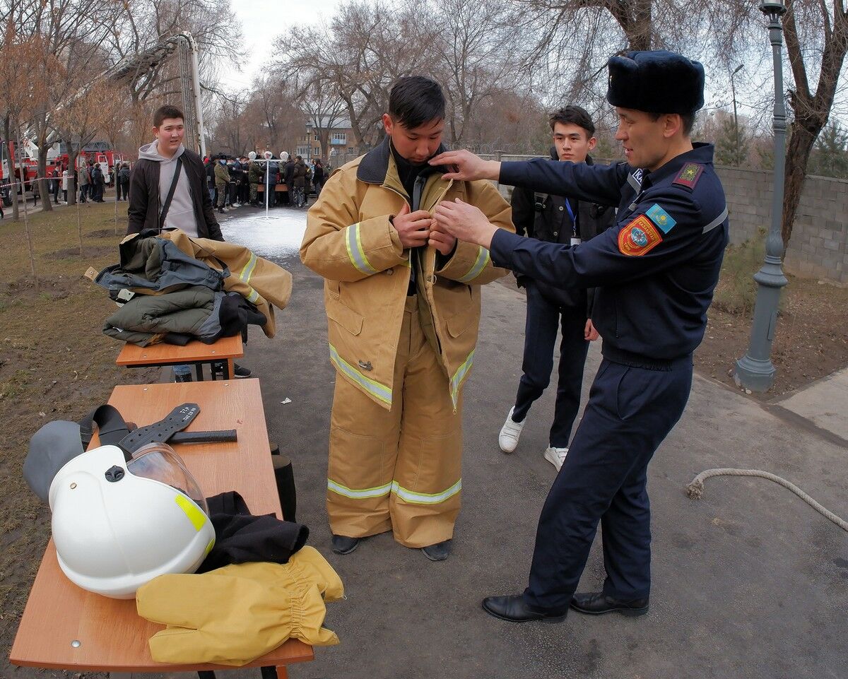 1 марта - во Всемирный день гражданской обороны - на алматинской Аллее спасателей многолюдно. Здесь и выставка спасательной техники, и спортивные состязания, и флешмобы. Каждое подразделение проводит свой мастер-класс. Можно попробовать по тревоге надеть на себя полную экипировку пожарного, научиться правильно использовать ранцевый огнетушитель или покататься в корзине настоящего боевого автоматического телескопического коленчатого подъемника. Участвуют в мероприятии в основном школьники и студенты. У некоторых загорелись глаза. Возможно, так и выбирают дело жизни.