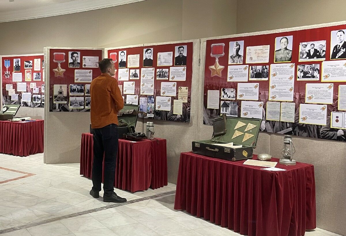 На выставке также представлены архивные документы и фото Алии МОЛДАГУЛОВОЙ и Маншук МАМЕТОВОЙ - Героев Советского Союза.