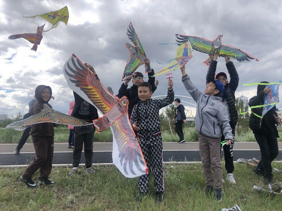 А в просторном триатлон-парке, который построен специально для подготовки спортсменов, дети запускали воздушных змеев. Их организаторы раздавали бесплатно всем желающим. Благо в Нур-Султане погода для этой спортивной забавы благоприятная, ветреная. Тех детей, у кого змеи парили выше всех, наградили кубками и грамотами. Всех остальных угостили мороженым.