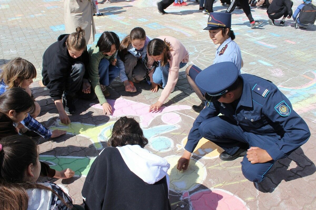 А дети творили не только на большом холсте, растянутом на несколько метров, более тысячи юных художников разукрасили цветными мелками чуть ли не всю центральную площадь. И тут к ним присоединились… полицейские. Наблюдать совместное творчество малышей и стражей порядка было весьма удивительно. Несомненно, результаты их творческих усилий добавляли настроения всем пришедшим на праздник.