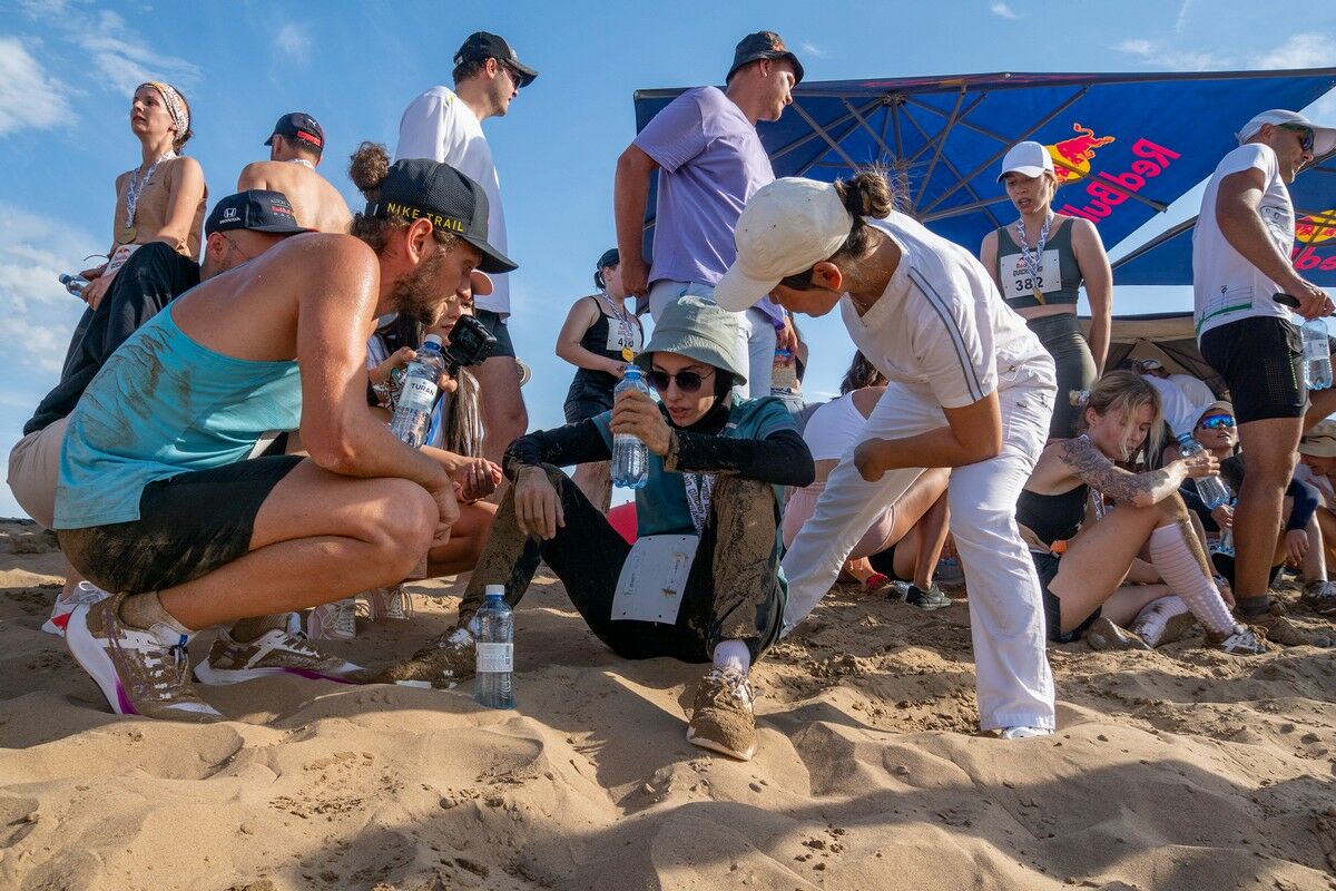 - Первый, как ледокол, протаптывает колею. А вы бегите след в след, - напутствует усевшихся вокруг него участниц ветеран песчаных забегов Тимур АМАНДЫКОВ. Мокрые кроссовки его лежат тут же, с килограммами налипшего песка.
