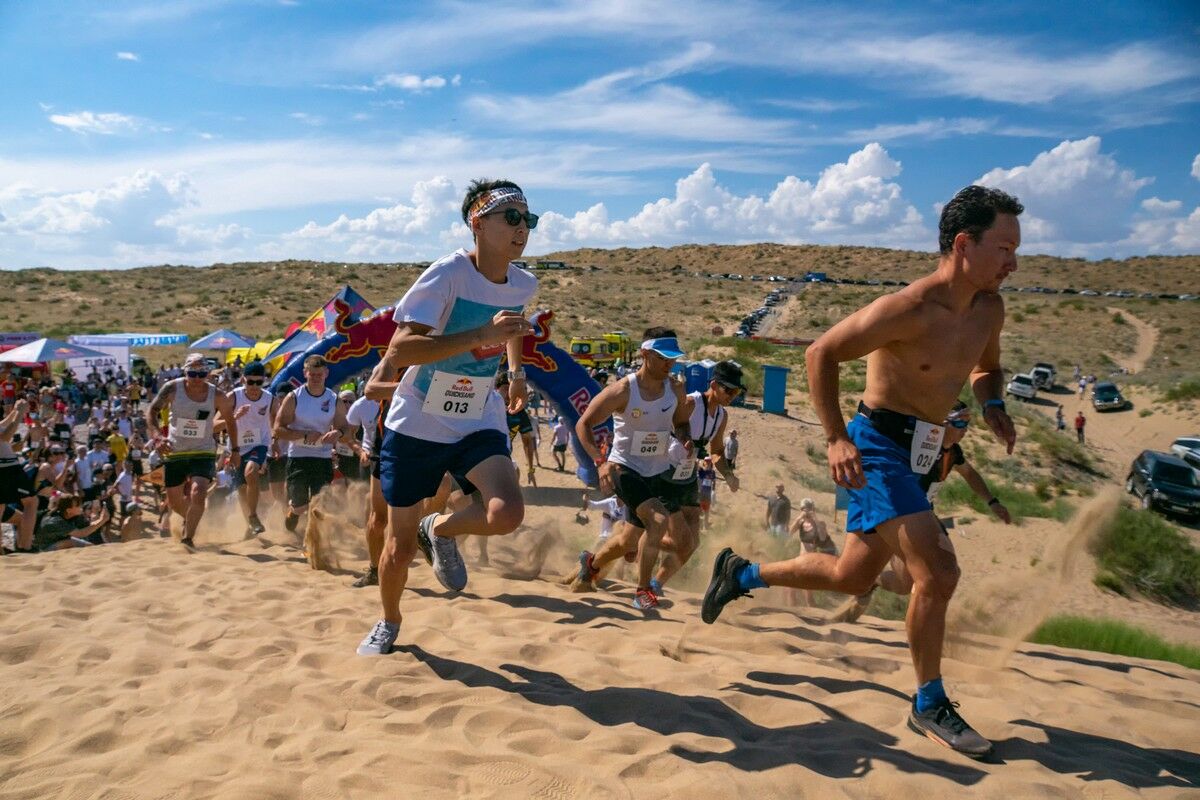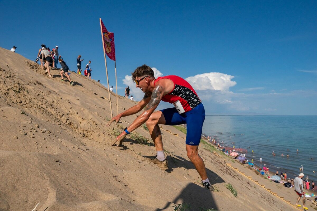 Было жарко, но плевать хотели на предупреждения синоптиков те, кто целый год ждал этого забега. Проверить, насколько сложным может быть километр в песках, наши экстремалы решились уже во второй раз. В этом году в любимом “море” алматинцев непривычно много воды. Из-за этого изменилась и конфигурация трассы. Маршрут для бегунов проложили по верху песчаного гребня, предусмотрели довольно крутой и продолжительный спуск, два захода в воду, два подъема на дюну и, ближе к финишу, еще один, самый эпичный. А еще парни в этом году совсем не по-джентльменски ломанулись бежать первыми. Хотя, может, оно и к лучшему: к девичьему забегу и солнце палило не так интенсивно, и трасса была уже изрядно растоптана.