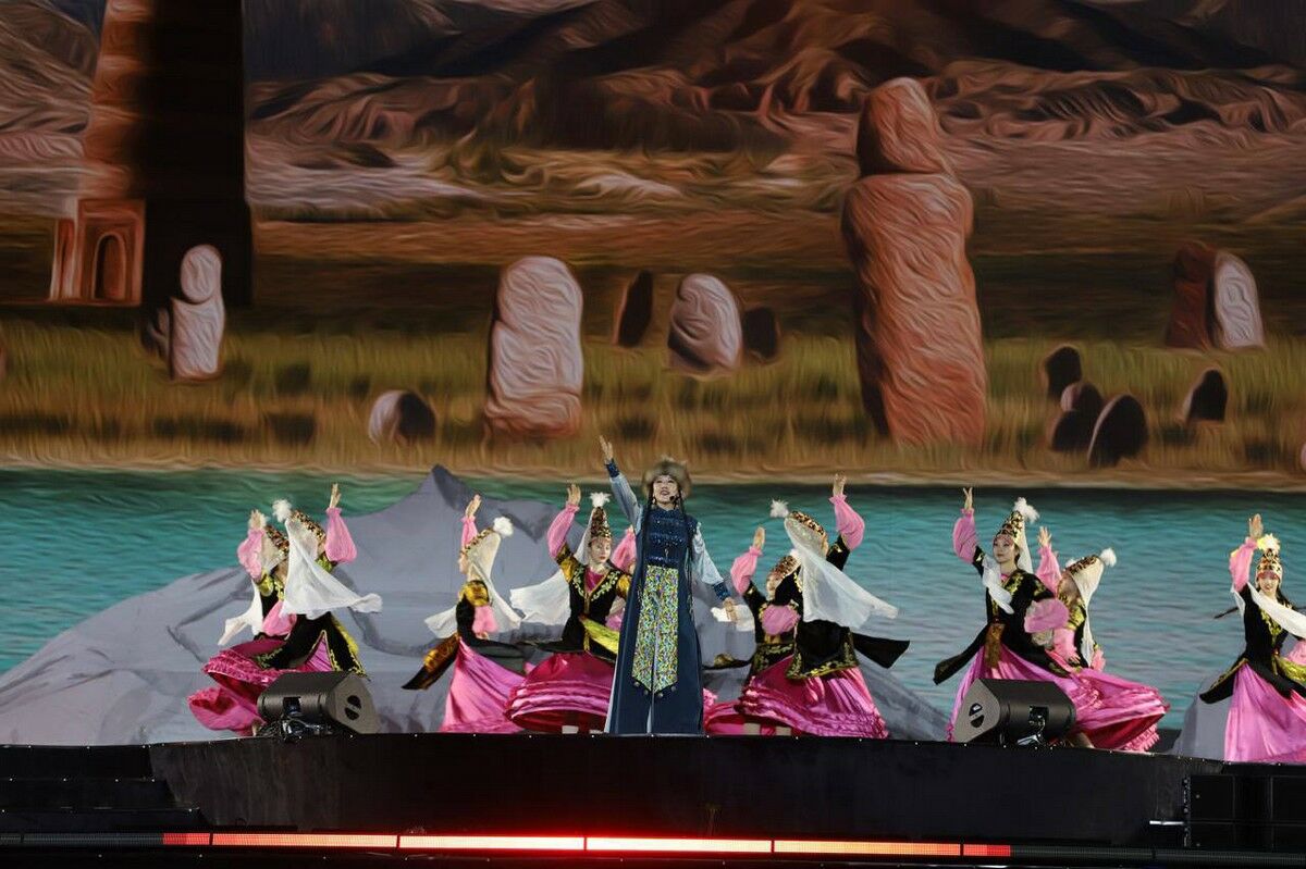 По случаю знаменательного события президент Касым-Жомарт ТОКАЕВ направил поздравительное письмо, которое со сцены зачитала министр культуры и информации Аида БАЛАЕВА.