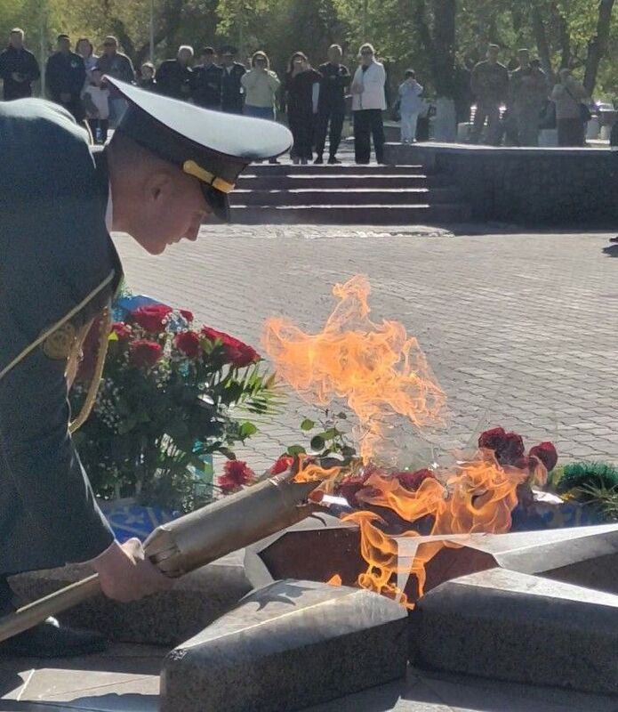 - Сегодня мы принимаем участие в торжественном митинге, посвященном 80-летию Победы, двум героическим дивизиям, 238-й гвардейской стрелковой дивизии и восьмой гвардейской стрелковой дивизии, сформированным в 1941 году в Семипалатинске, и торжественному приему Эстафеты Победы, - сказал председатель городского Совета ветеранов Семея Кенжебай БЕРДИКЕНОВ. - Согласно решению Содружества Независимых Государств эстафетная группа области Абай пронесет зажженный факел из Вечного огня до Маканчинского пограничного отряда, и Эстафета Победы совместно с департаментом пограничной службы области Абай будет торжественно передана делегации области Жетысу.