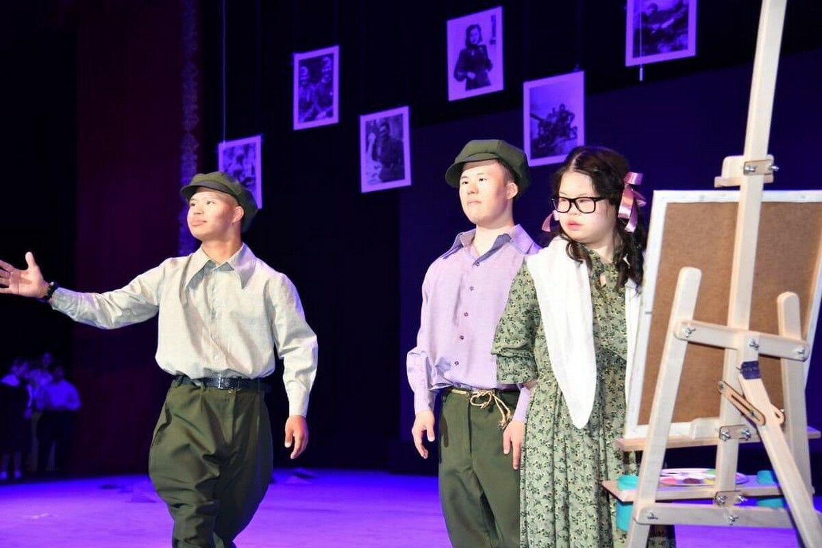 В Атырау дети с синдромом Дауна представили спектакль к 80-летию Великой Победы. 14 ребят смогли раскрыться как настоящие актеры на сцене Академического казахского драматического театра им. Махамбета.