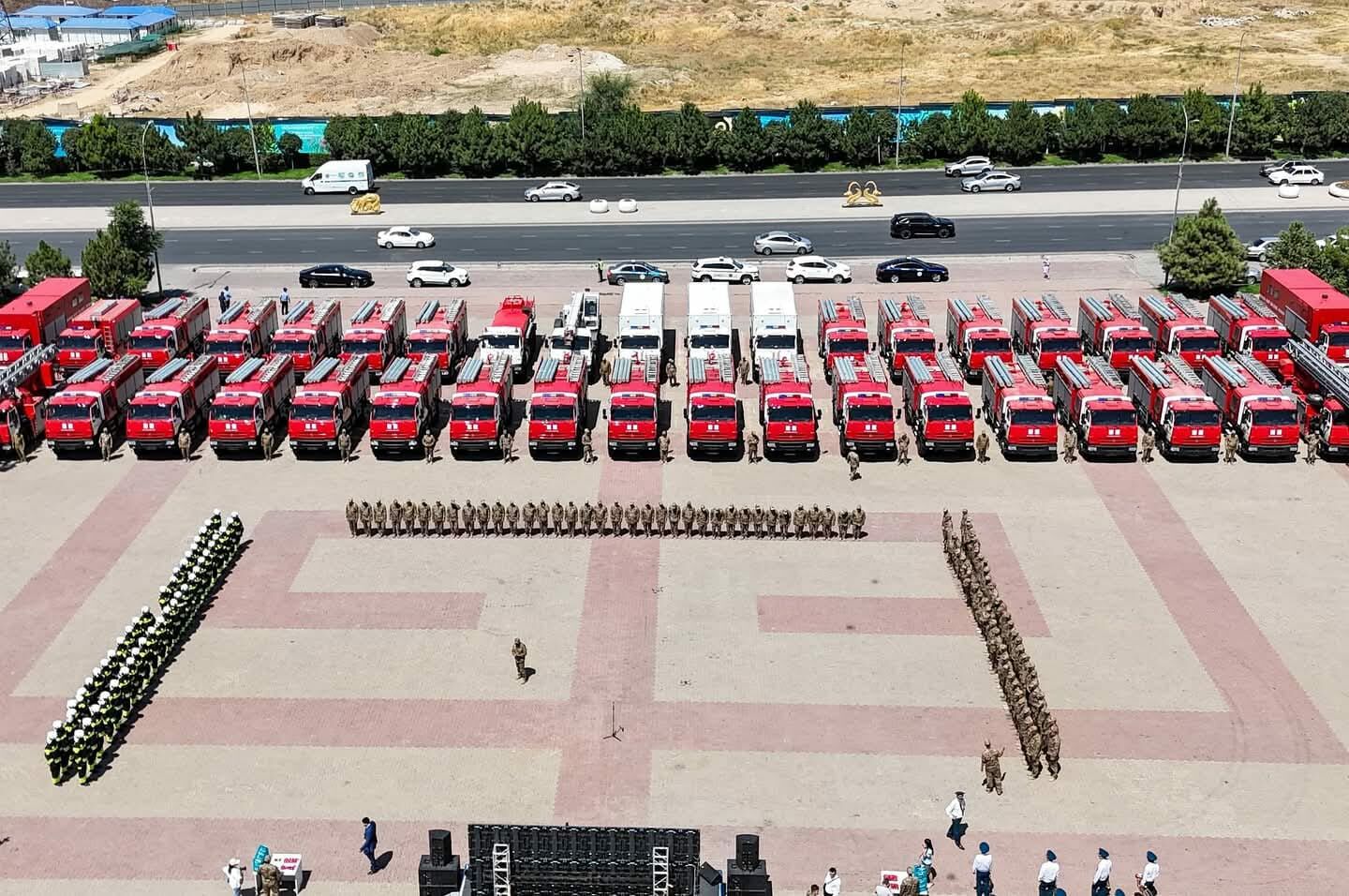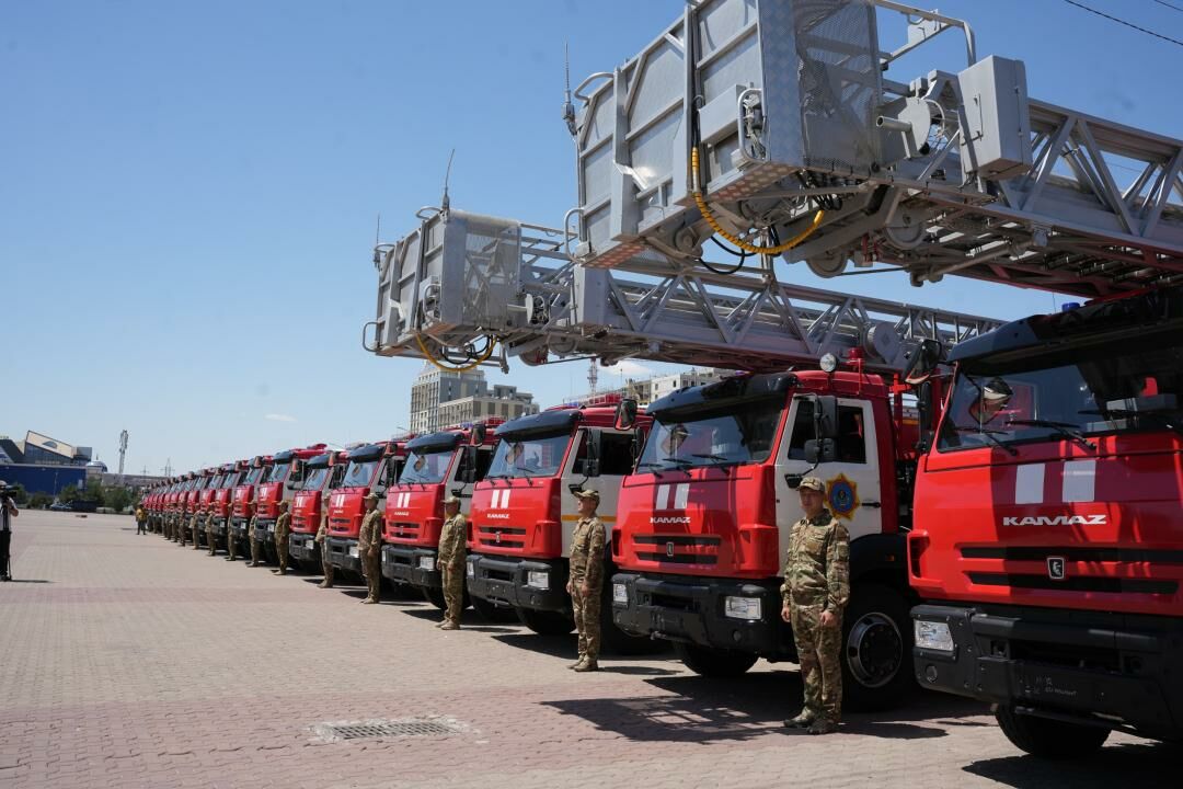 40 единиц различной техники - автоцистерны, насосно-рукавные автомобили, автокраны, аварийно-спасательные и прочие машины - были приобретены при поддержке акимата Шымкента.