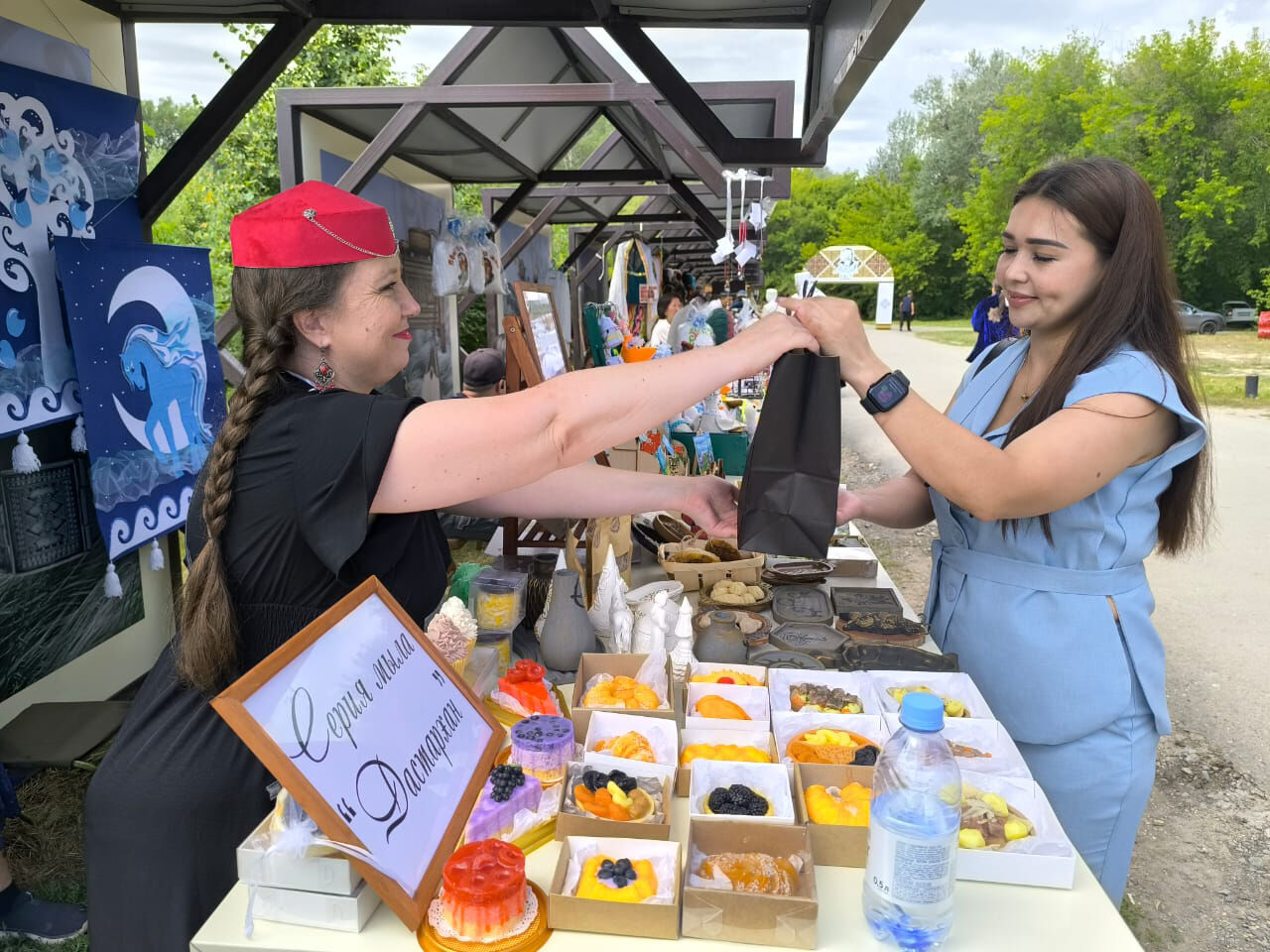 - Хотя посетителей было и немного, но у меня снова раскупили все "вкусное" мыло! - радуется Оксана. - А под конец дня ко мне подлетела ватага юных футболистов. Они так искренне восхищались! И все десять мальчиков купили по "вкусняшке". Высоко меня оценило и жюри фестиваля ремесленников. Моя серия сувенирного мыла "Дастархан" удостоилась награды в размере 200 тысяч тенге за креативную идею. Очень хочется расширить меню моего мыльного "ресторана"! А еще мечтаю провести мастер-класс, о чем меня сильно просят и дети, и взрослые.