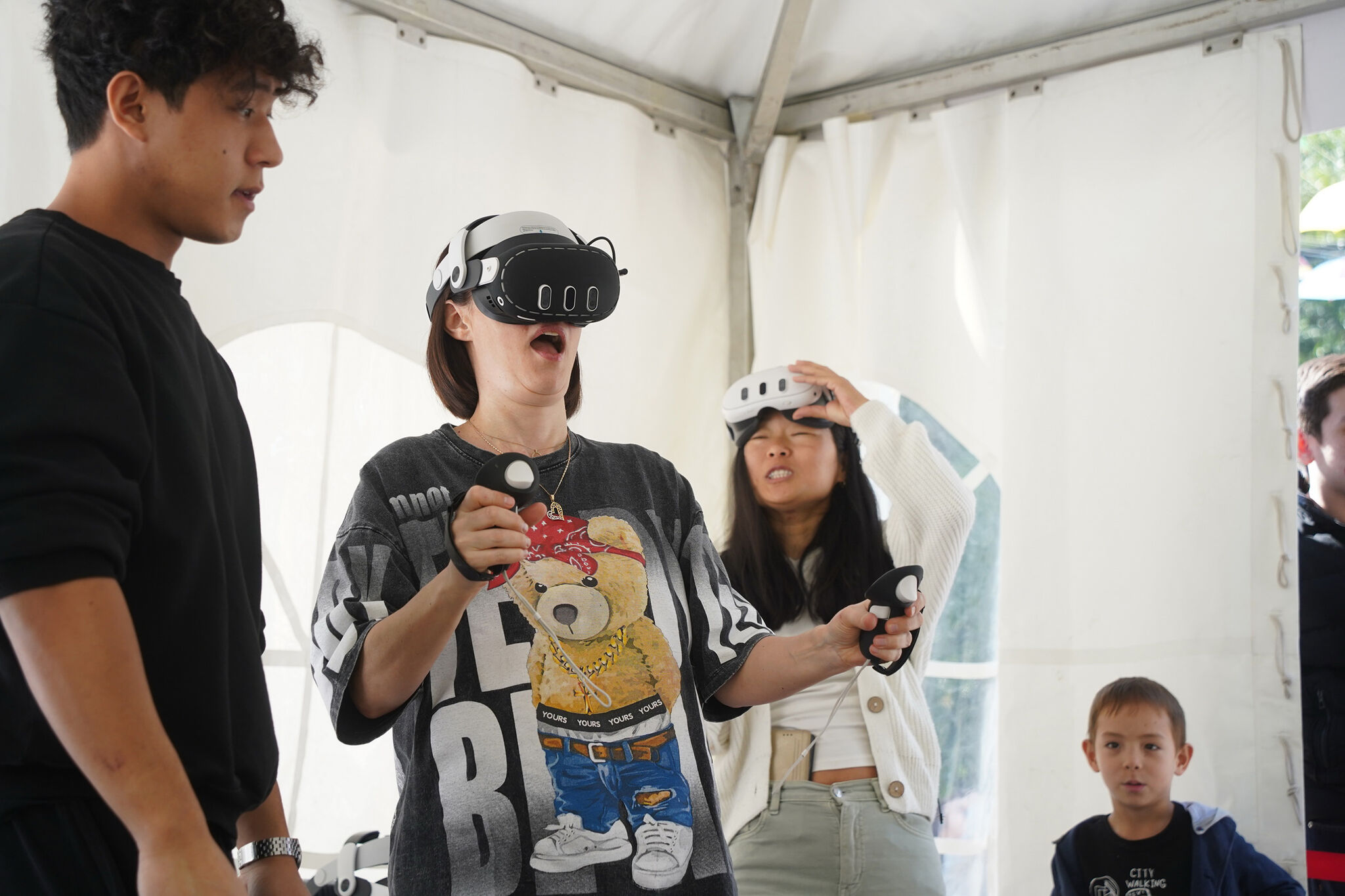 Желающим активностей можно было пострелять из лука, но не обычного, а цифрового. Форма лука и программа точно повторяют традиции садак ату. А вот футбол дронов, конечно, отличается от привычного хода игры. "Футболисты" надевают очки, управляют мячом с помощью пульта. Дроны-мячи жужжат, как гигантские пчелы. Интересно играть, интересно смотреть. Да и гол в ворота соперника дарит радость самую реальную, а не иллюзорную.