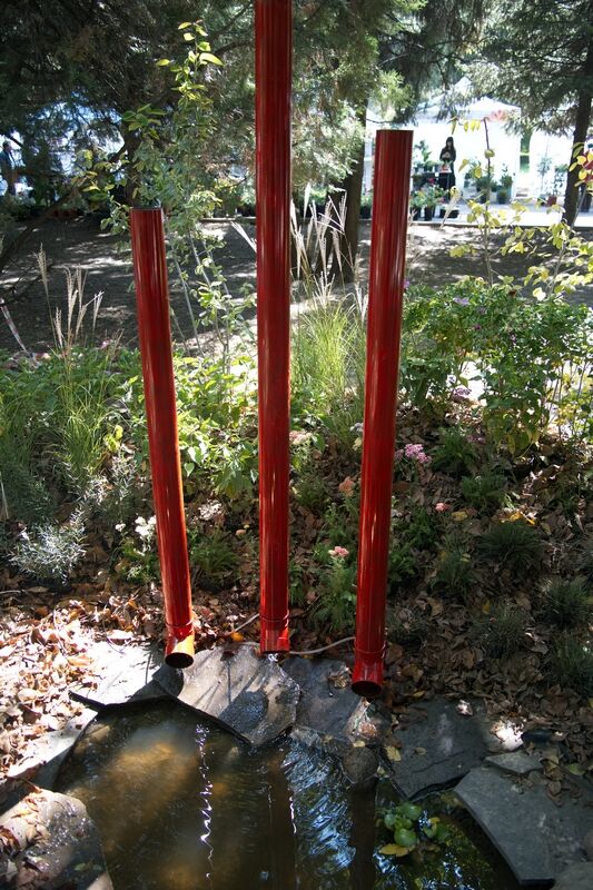 Еще один эффектный сад у Александра РОДИОНОВА: вместо фонтана - настоящие водосточные трубы. Пруд окружен растениями, которые могут ненадолго уходить под воду, и вообще тут все про практичность.