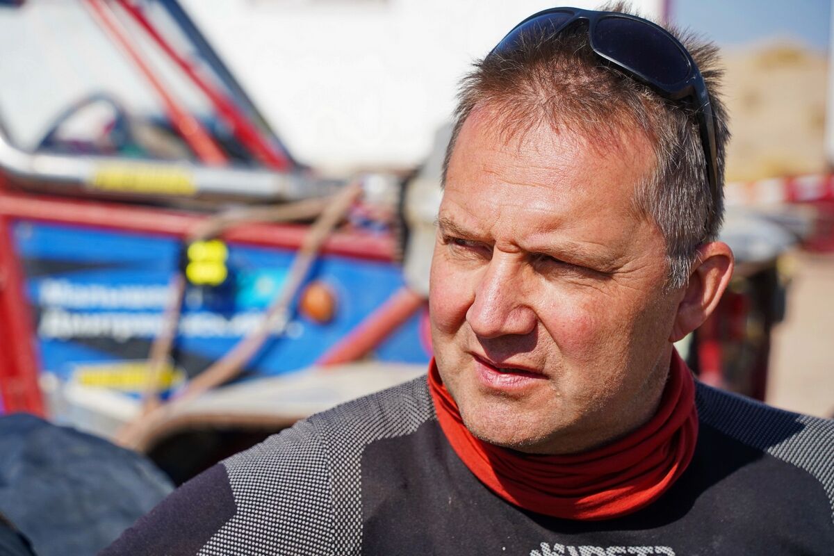 Константин ДАНОВ показывает свой прототип (такие участвуют в самой сложной категории ТР3) - он такой в мире один, строится на рамном каркасе, выдерживает перевороты и падения. Штурманом - сын.