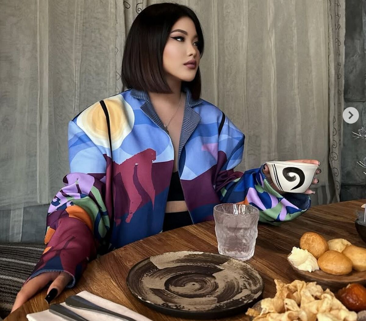 - Она сама нашла меня в соцсетях еще во время пандемии и дистанционно заказала пиджак. Я сшила его по присланным меркам, и с тех пор мы сотрудничаем. Когда Айжулдыз была в Японии, то произошла забавная история. Она там носила одежду из моей коллекции, вдохновленной как раз этой страной. А в Японии сейчас засилье массмаркета и очень трудно найти дизайнеров, сочетающих авторский стиль и национальную тему. К Айжулдыз подошел на улице владелец бутика и спросил, откуда такой интересный наряд. Она дала мои контакты, и теперь мои модели продаются в Японии, причем их очень любят покупать туристы.