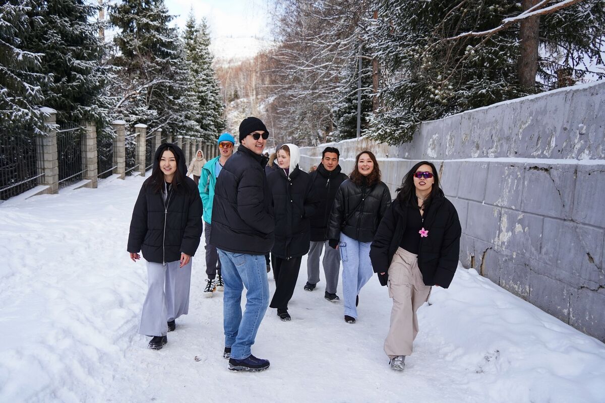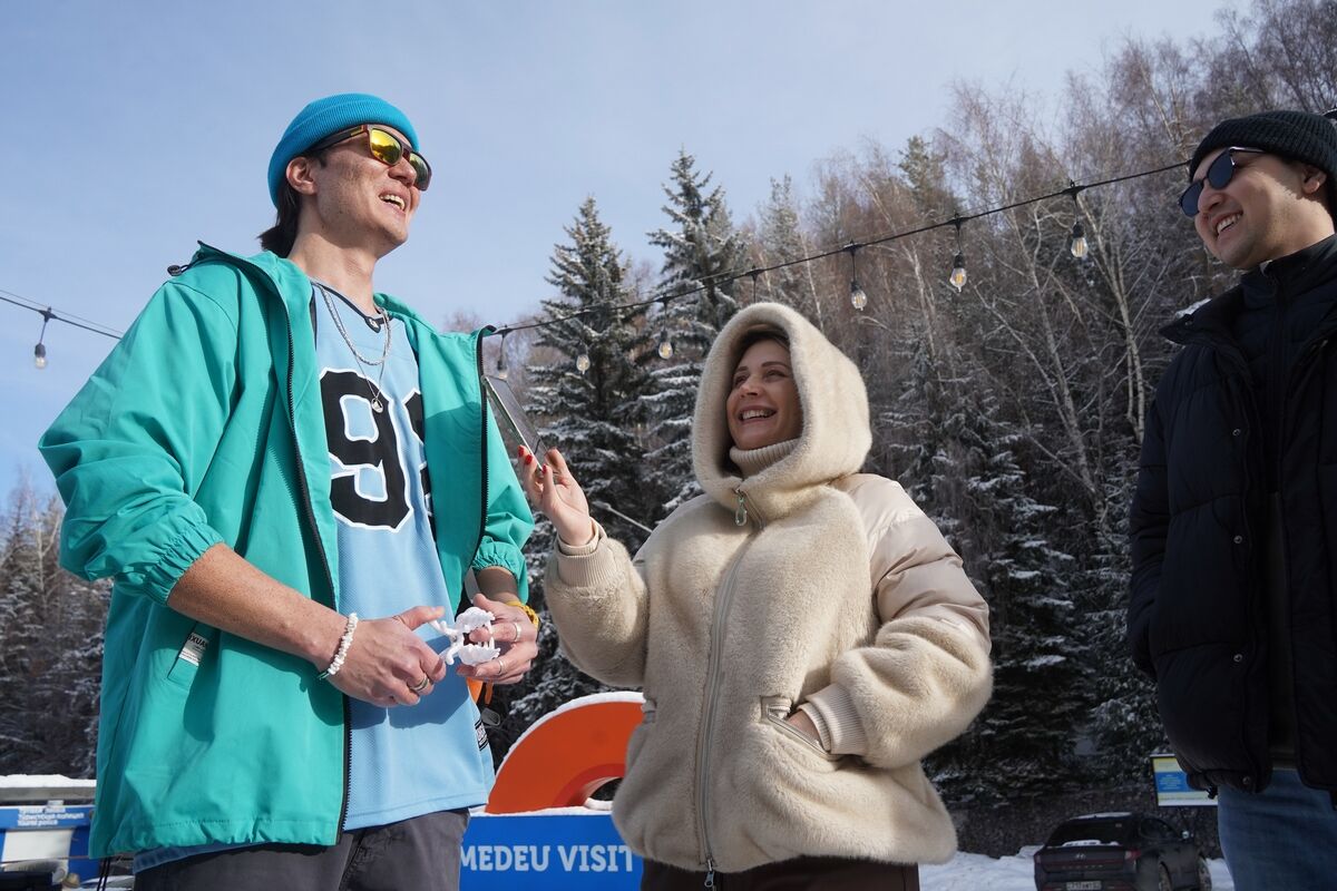 Ребята решили позавтракать, а уже затем подняться повыше. Необычная компания привлекала внимание гостей Медеу. Встретившись впервые, высокие парни и девушки общались как старые знакомые: комичные ситуации, связанные именно с ростом, у многих были как под копирку.
