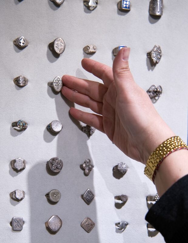 Хозяйка музея Аймак КАНГУЖИНА сама проводит экскурсии и всегда готова рассказать о своих сокровищах. Она сделала подборки колец, чтобы показать орнаменты, стили, формы разных регионов.