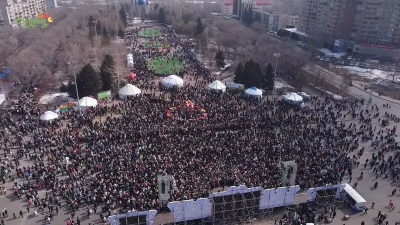 Как правило, 22 марта основное празднество в областном центре разворачивается на площади Республики напротив областного акимата. В зависимости от фантазии организаторов там проходят различные мероприятия: от конкурса баурсаков до шоу канатоходцев.