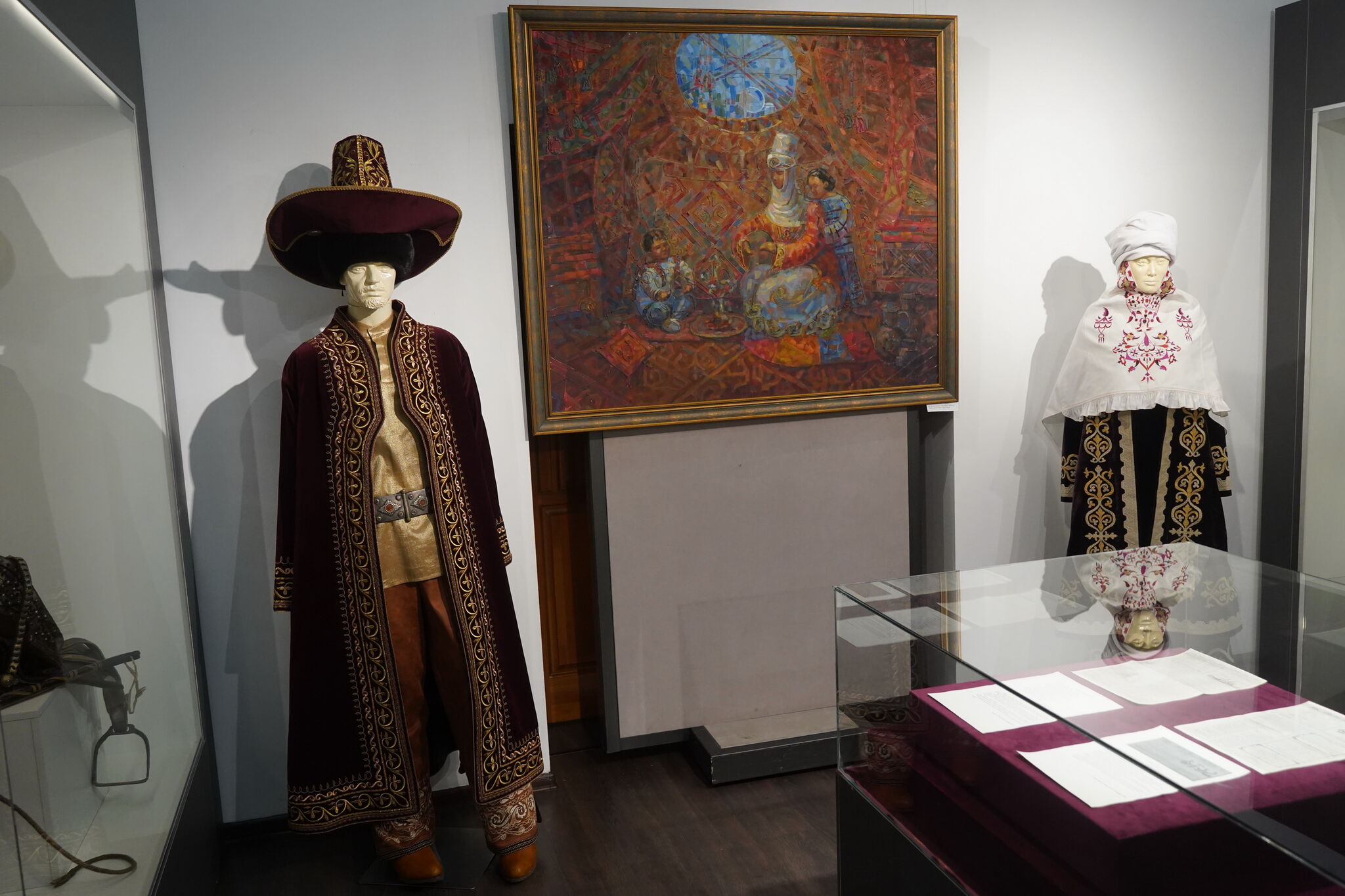 Вся экспозиция собрана с большой любовью и знанием традиций. Тут и роскошные копии национальных казахских костюмов, и подлинные наряды - узбекский, татарский. Музыкальные инструменты и забавы, без которых не обходился праздник.