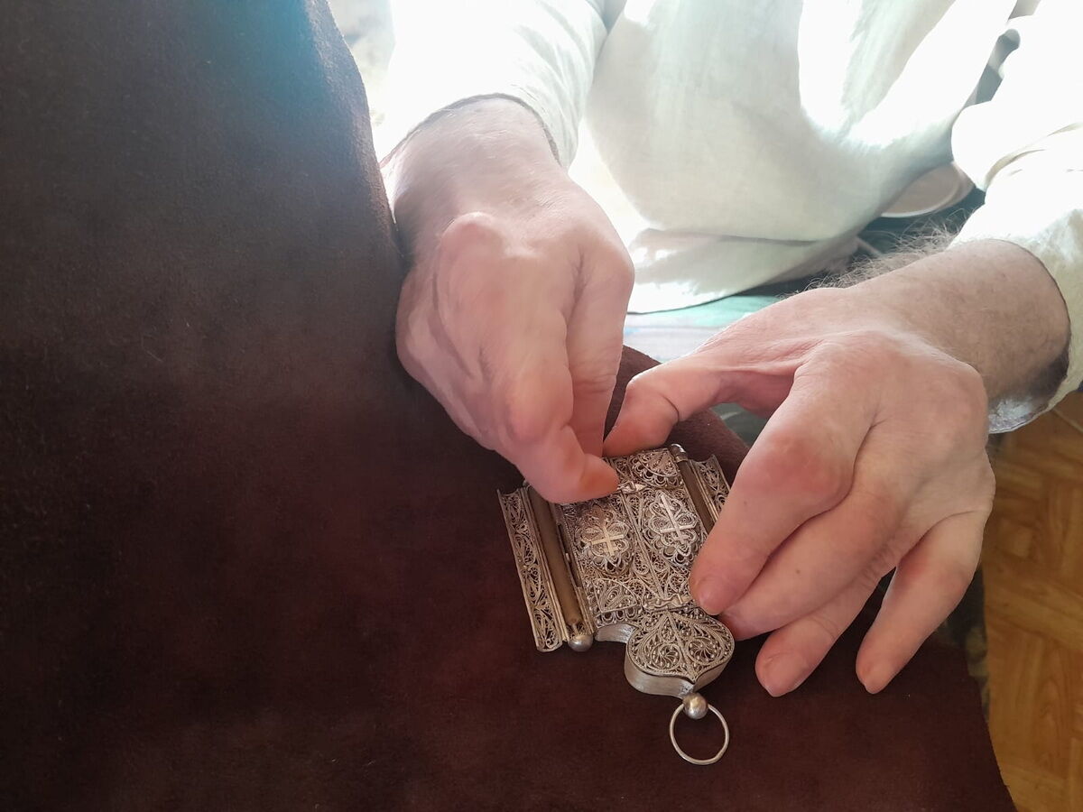Сам же он гордится тем, что владеет старыми техниками: может сковать проволоку из пластины вручную или выполнить сложнейшую технику грануляции без использования припоя. В профессиональной среде ходит легенда, как он с напарником на спор умудрились припаять тончайший филигранный листик к массивному медному ведру - задача, за которую не возьмется ни один современный ювелир.