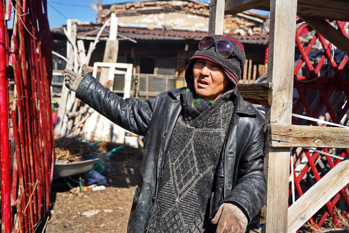 Напротив и вовсе необычное место: во дворе странного строения свалены резные двери, колонны, куски дерева и других материалов, части юрты. Из помещения валит дым: газ проводить дорого, и, чтобы обогреть мастерскую для работы, мастер по дереву Аманжол КУТАМОВ топит его по-чёрному. Процесс лучше пережидать снаружи - внутри стелется едкий дым, создавая киношные эффекты. Вверху чертежи с интерьерами на заказ, у стен резные изделия, к трону китайского императора прислонено колесо, которому 80 лет. Хозяин в стильно-драном прикиде рассказывает такую историю жизни, что мы на какое-то время забываем про развитие туризма.