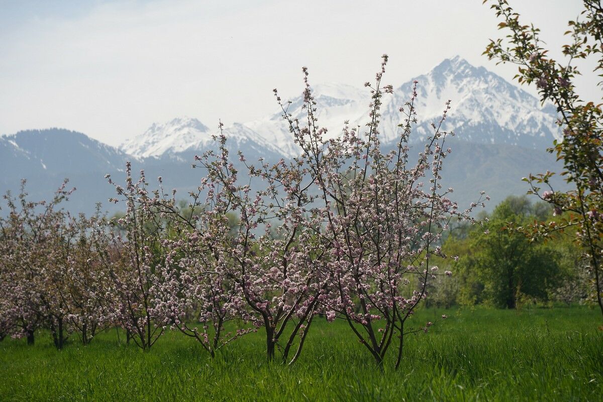 Теперь рядом со стройными рядами молодых деревьев зияет пустая поляна. Здесь росли яблони, посаженные ещё Джангалиевым, в природе сиверс может расти по трёхсот лет.