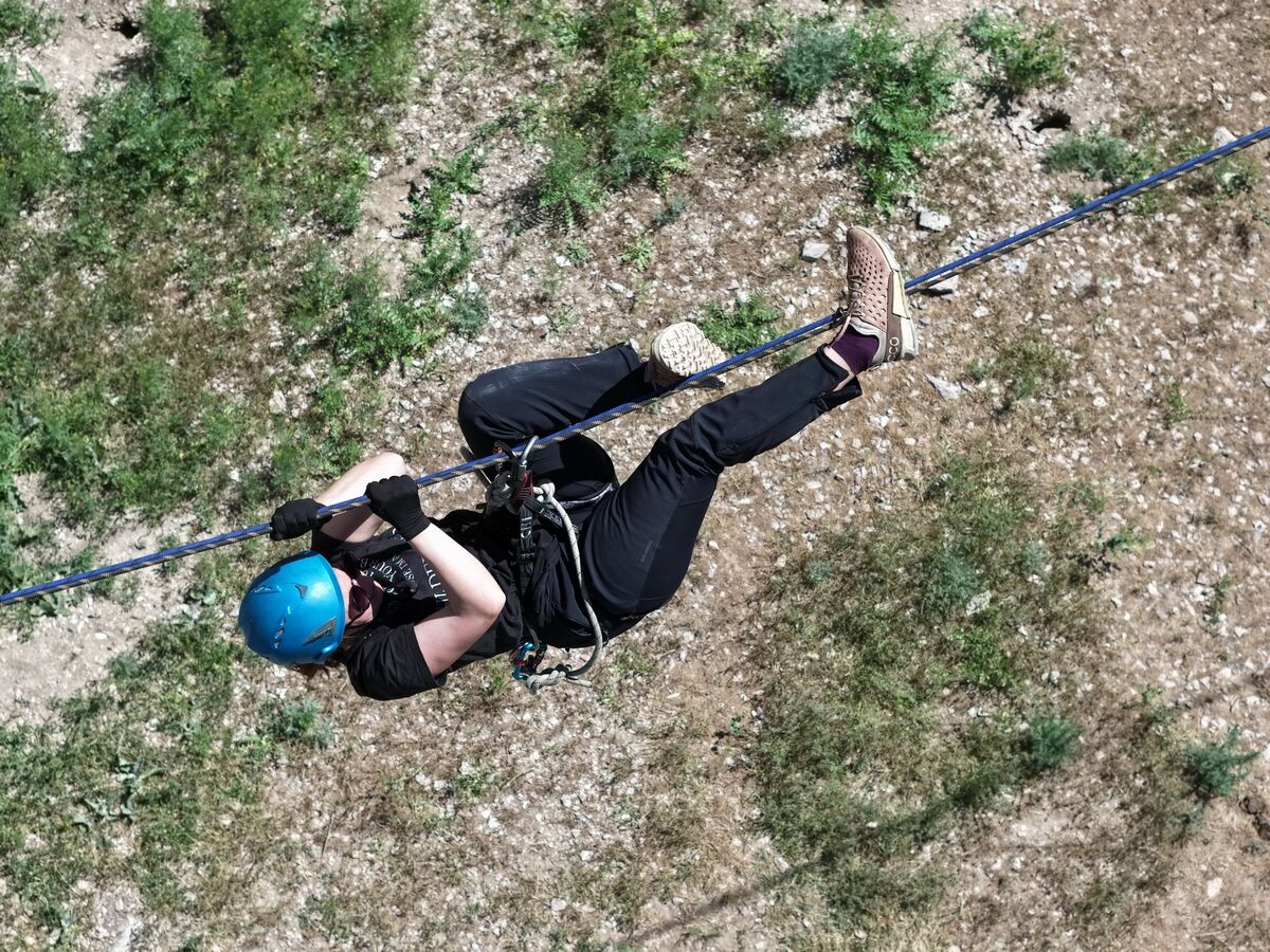 Самый захватывающий этап - 60-метровая переправа. Но не по бурной реке, а над усыпанной обломками скальника долиной массива Тамгалыжар. Мультигонщики должны доставить себя из одной точки в другую по горизонтальной переправе. Сложно и головокружительно!