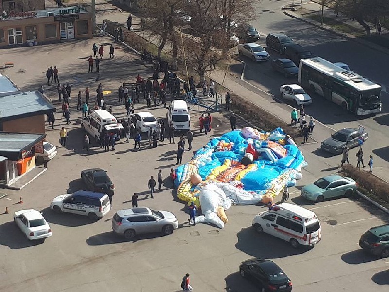 Сразу подчеркнем: днем ранее служба “112” разослала всем горожанам SMS-предупреждение о шквалистом ветре. Однако ни родителей, ни организаторов аттракциона это не остановило. По данным Комитета по чрезвычайным ситуациям МВД, ЧП произошло в 16.48: перевернулся батут сложной конструкции площадью 200-250 квадратных метров. Более того, как сообщили чеэсники, батут пролетел около 20 метров.