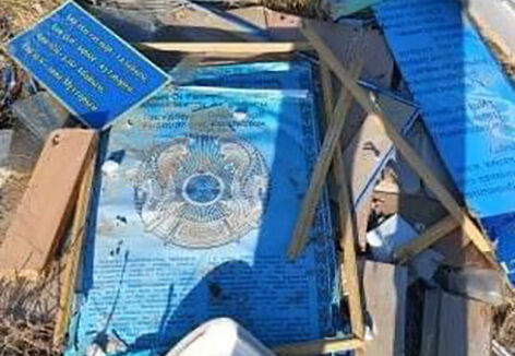 В пригороде Актобе неизвестные выбросили на мусорку казахстанский герб.