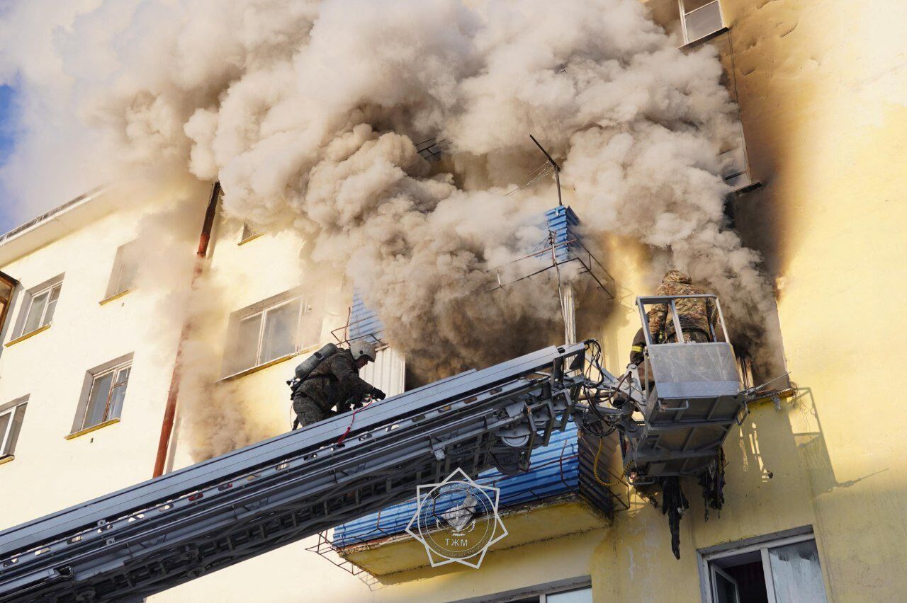 Утром в центре города произошёл бытовой пожар. На проспекте Ауэзова из окна многоквартирного дома на третьем этаже валил густой дым. Тушение велось в том числе со стороны оживлённой проезжей части: для проникновения в квартиру пожарные задействовали автолестницу.