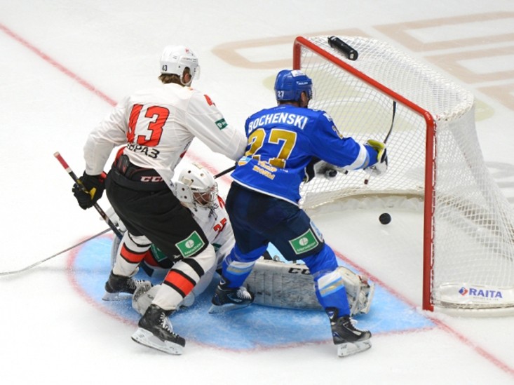 А что касается казахстанских хоккеистов, то им лучшего и не надо. С таким стадионом можно и на Кубок Гагарина замахнуться! Но это все в перспективе. А пока тренерский штаб "Барыса" ломает голову над тем, где взять центральных нападающих для второй и третьей троек нападения. Использовать на этой во многом оборонительной позиции одного из самых результативных игроков команды - правого крайнего Романа СТАРЧЕНКО - не лучшее решение проблемы. Это, в принципе, показал и матч Кубка президента между "Барысом" и новокузнецким "Металлургом". Сыгранности казахстанским звеньям явно не хватало. Угрожали воротам россиян они крайне редко. Благо в строю была вся североамериканская пятерка "Барыса". От нее и исходили все неприятности для "Кузни". Причем по ходу поединка хозяева дважды отыгрывались. Но броски Дастина БОЙДА и Брэндона БОЧЕНСКИ позволили астанчанам уйти на второй перерыв при счете 2:2. А в третьем периоде забивали уже только наши. Найджел ДОУС ловко подправил шайбу после щелчка Кевина ДАЛЛМЭНА, а под занавес встречи Талгат ЖАЙЛАУОВ все-таки напомнил нам о том, что юридически "Барыс" является казахстанским клубом. 4:2 - первая победа на новой арене.