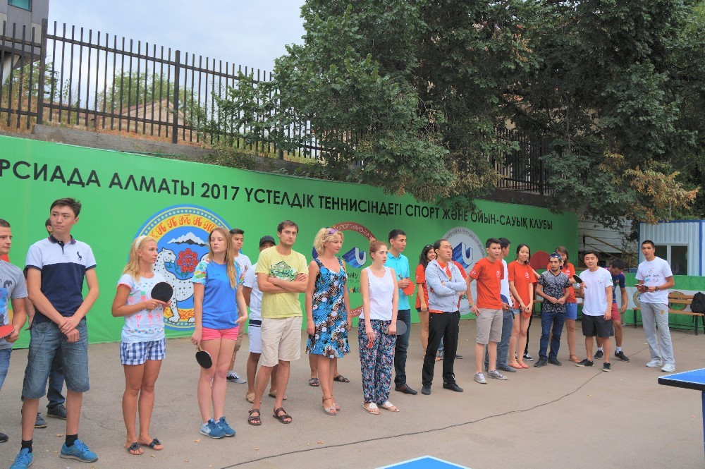В прошедшие выходные на Центральном стадионе Алматы прошел необычный турнир по настольному теннису. Журналисты скрестили ракетки с волонтерами Универсиады-2017. Состязание закончилось победой команды СМИ.
