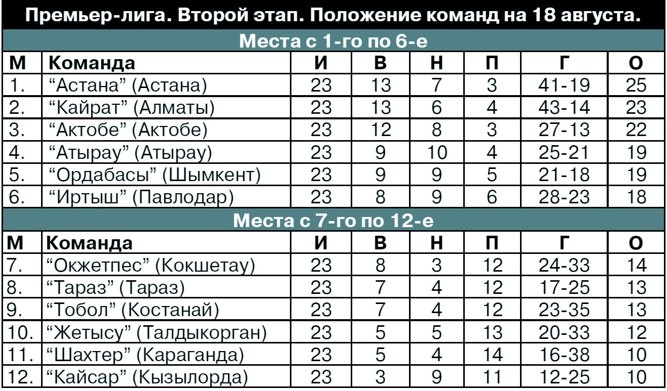 В группе команд, борющихся за места с 7-го по 12-е, ничего сверхъестественного не случилось. Мирно, без голов разбежались карагандинский “Шахтер” и кокшетауский “Окжетпес”, а также кызылординский “Кайсар” и “Тараз”. И лишь только талдыкорганский “Жетысу” преподнес мини-сенсацию, уверенно обыграв в Костанае местный “Тобол”, -3:1.