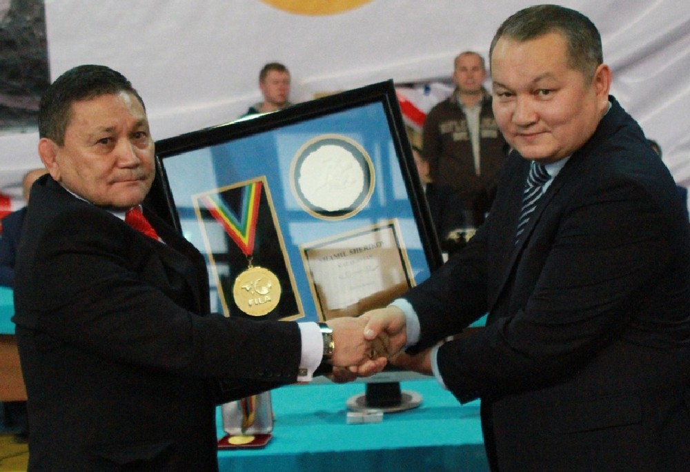 - В этот раз турнир прошел на ура, - говорит организатор соревнований, друг Шамиля Серикова Жаксыбай БАЗИЛЬБАЕВ (на верхнем снимке - слева).- Все нам помогали: и Министерство культуры и спорта, и городской акимат. Вот только меня чуть не арестовали... Как вы знаете, Шамиль Сериков был удостоен наивысшей награды ФИЛА - его имя внесено в Зал славы Международной федерации борьбы. Президент ФИЛА вручил почетный сертификат сыну Шамиля - Тимуру. Трофей мы отдали на хранение в республиканское спортобщество “Динамо”, за которое выступал Сериков. Накануне соревнований нам с Тимуром понадобился этот сертификат, чтобы показать его студентам Академии спорта и туризма, где учился Шамиль, а также представить его на торжественном открытии самого турнира. Секретарь зампреда “Динамо” Аскара ОМАРКУЛОВА отдала нам трофей, который висел в кабинете ее начальника. А вечером ко мне домой нагрянула полиция. Хотели меня арестовать за то, что я якобы силой вырвал награду из рук девушки. Вот такая история!