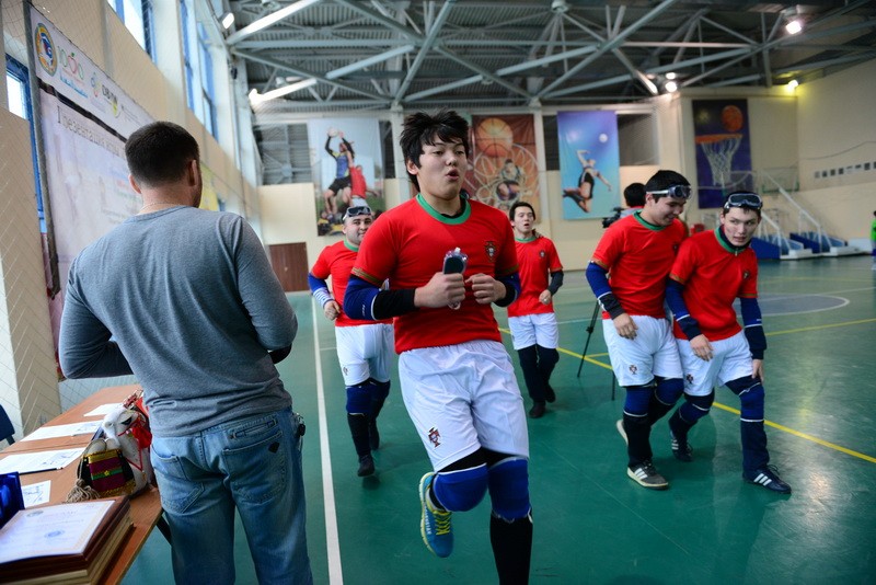 Судья дал сигнал, и в зале наступила полная тишина. Это одно из главных правил голбола, ведь игроки полагаются только на свой слух. На поле в черных масках на лицах вышли две команды.