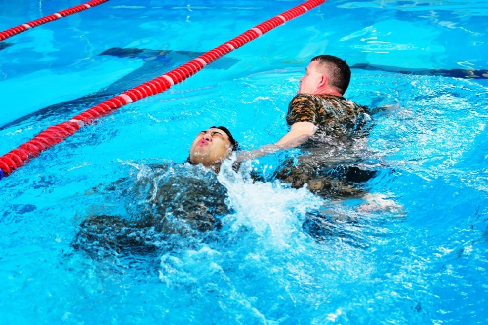 - Задания максимально приближены к военным действиям, - говорит многократный чемпион Азии, тренер по плаванию ЦСКА МО РК старший сержант Дмитрий ГОРДИЕНКО (на снимке). - Солдаты должны выполнять поставленные задачи не только на суше, но и в воде. При форсировании водных преград без навыков плавания не обойтись, тем более в одежде. В экстремальных условиях никто не даст возможность снять форму и надеть купальник.