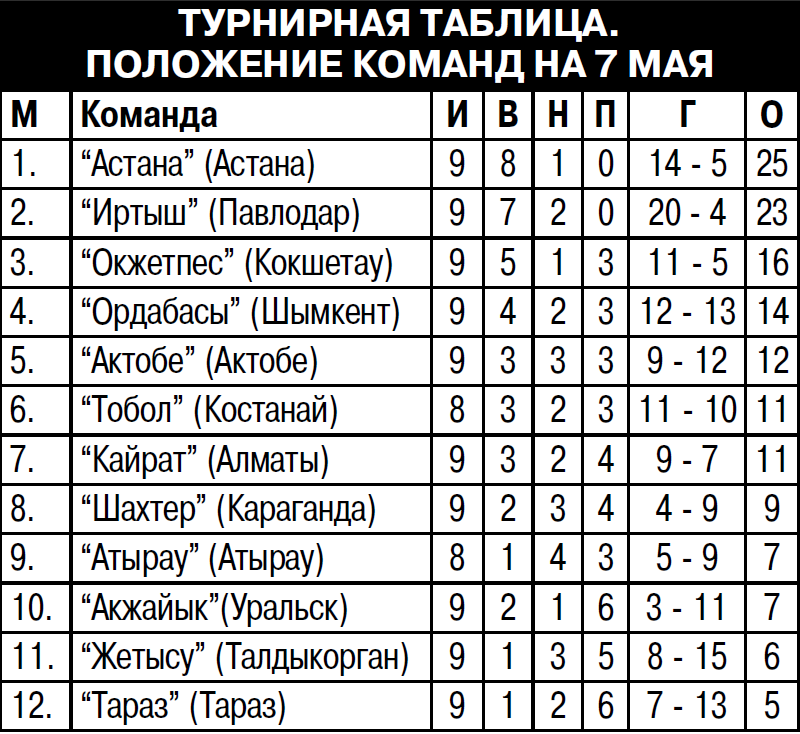 Чемпион страны хоть и со скрипом, но обыграл в гостях “Окжетпес” - 1:0. Причем кокшетаусцы потерпели второе поражение подряд. Но по-прежнему занимают третье место. Павлодарцы дома довольно уверенно победили костанайский “Тобол” - 3:1.
