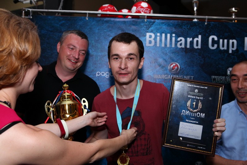 Особенно захватывающим и интригующим получился финальный поединок между Александром ШИРОКИХ (на снимке) и Ильясом САРСЕЕВЫМ. Оба игрока показали красивую игру с продуманными комбинациями. Болельщики с интересом наблюдали за этой битвой на зеленом сукне. Фортуна в этот день благоволила Александру, который одержал шесть побед, в том числе и в финале со счетом 2:0. Он заслуженно стал обладателем кубка и плазменого телевизора. Ильясу достались второе место и планшет, а замкнул тройку призеров Жанарбек АШИМЖАН, который в упорной борьбе вырвал победу у Фархата КЫСТЫБАЕВА.