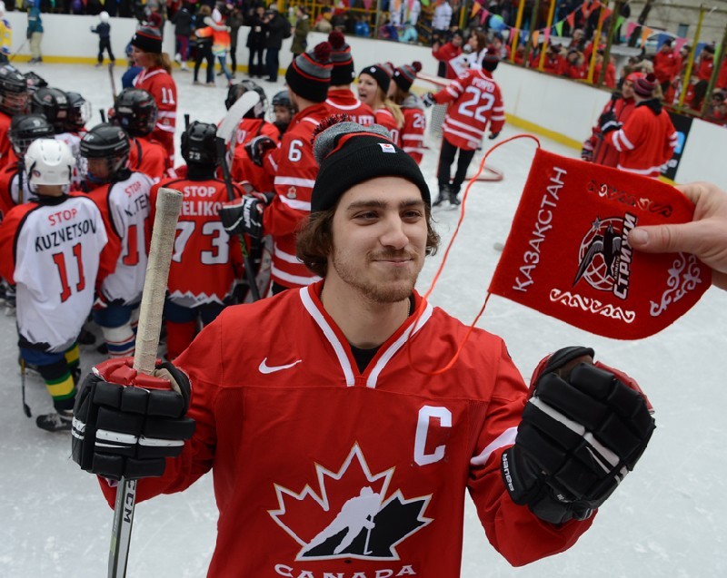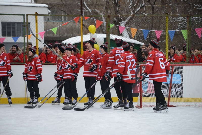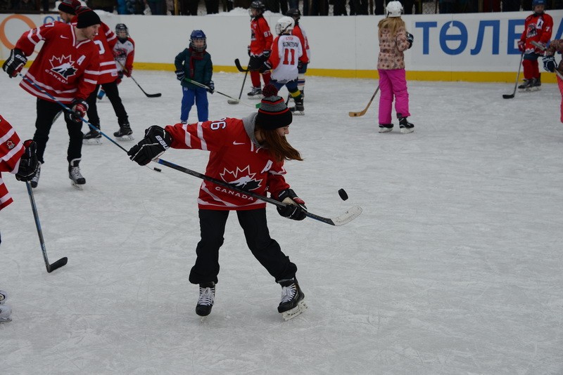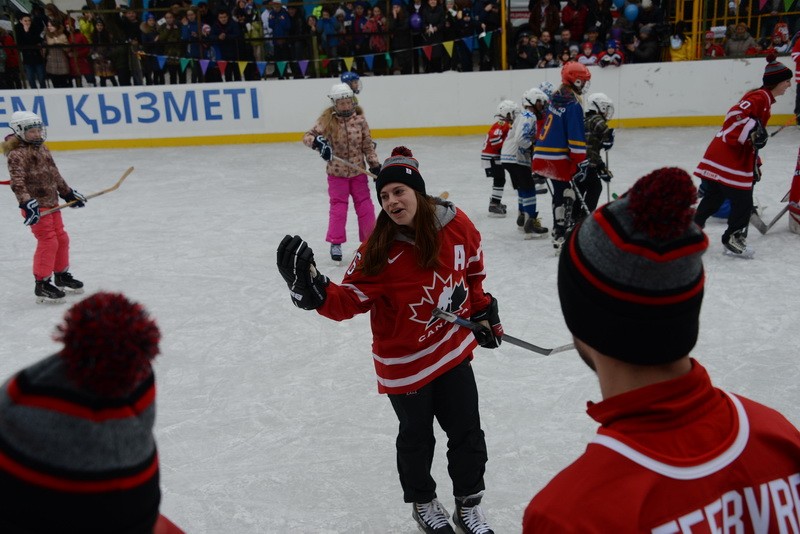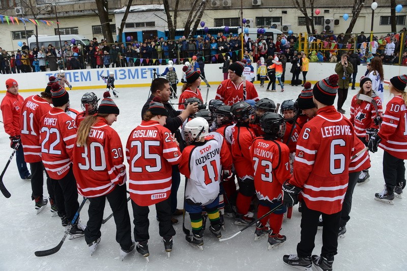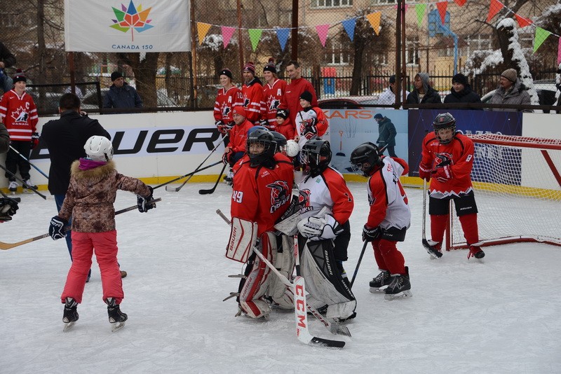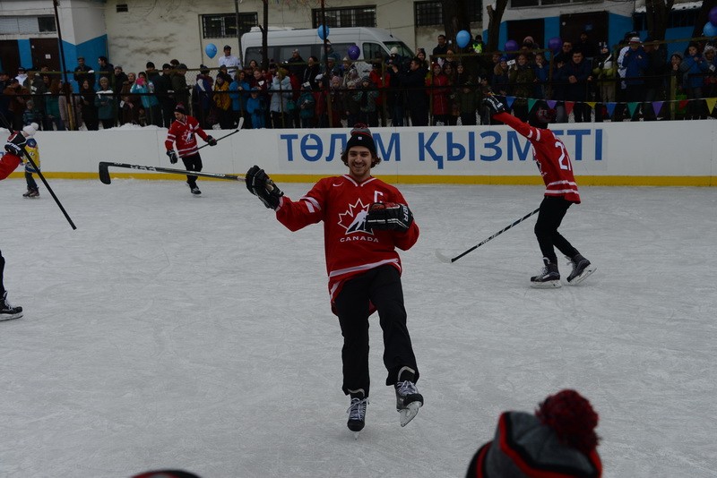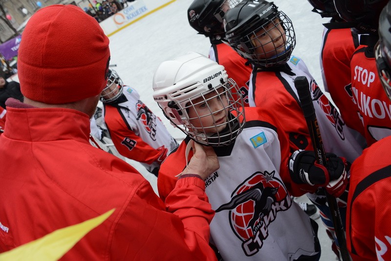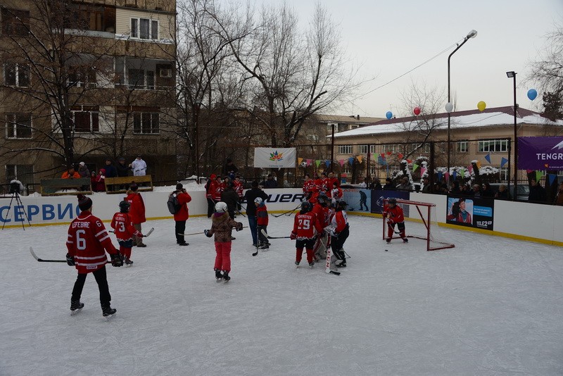 В пятницу, 27 января, в одном из дворов Алматы хоккейная сборная Канады дала мастер-класс для юных спортсменов. Спортсмены продемонстрировали финты и трюки, скрестив клюшки с детской командой “Стрижи”.