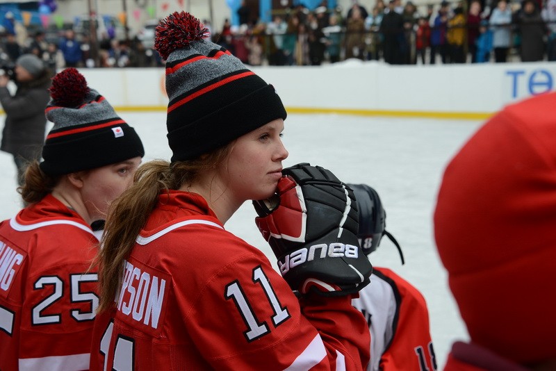 Почти два часа канадские хоккеисты провели на льду с юными спортсменами. Самой младшей хоккеистке Таисии КУЗНЕЦОВОЙ пять лет, но она лихо владеет клюшкой. Кстати, она сорвала аплодисменты, забросив шайбу в ворота канадцев. Даже если вратарь и поддался, то Тае все равно зачет.