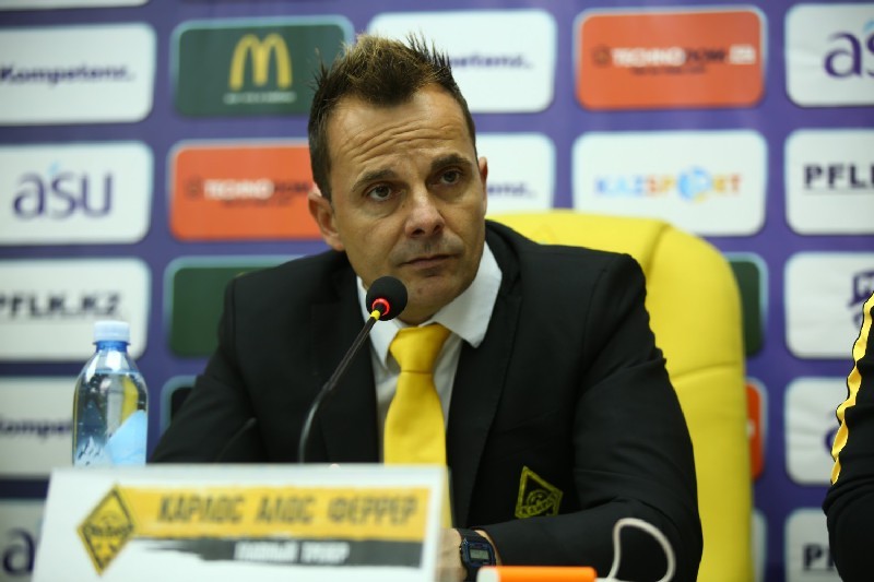Пока неизвестна и судьба наставника “Кайрата” Карлоса Алоса ФЕРРЕРА (на снимке). Кайратовцы, естественно, тоже выиграли свой последний матч. Причем “Актобе” оказал хозяевам сопротивление. О чем говорит и счет - 3:2. Но эта победа особой радости алматинцам не принесла.