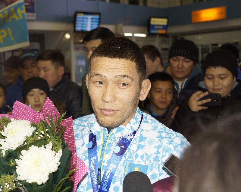 В Актобе торжественно встретили серебряного призера чемпионата мира по вольной борьбе Нурислама САНАЕВА (на снимке).