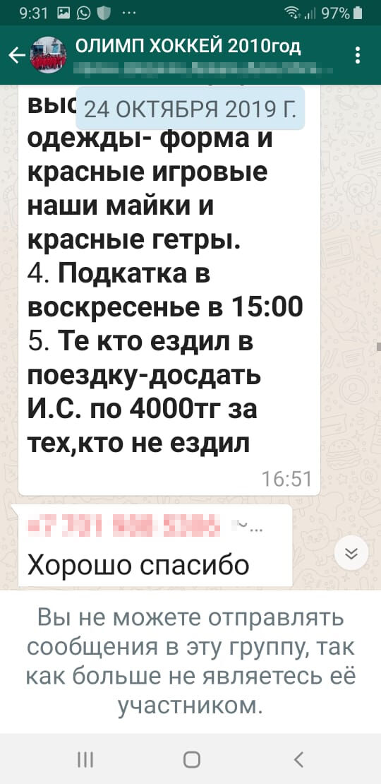 - На чемпионат Казахстана среди детей должна была ехать группа из игроков 2010-2011 годов рождения. Но после жалобы в “Олимпе” за несколько дней до поездки сообщили, что Касым ЕРЖАНОВ, Али НАФТАЛИЕВ и Клим КРИКОТЕНЬ 2011 года рождения никуда не едут. Хотя мы уже сдали по 23 тысячи тенге на билеты. Причина, как нам объяснили, в следующем: детей решили разделить по годам. Но другие дети, тоже 2011 года рождения, поехали. На деле за бортом остались те, чьи родители пожаловались на денежные поборы, - говорит отец Касыма Ержанова Ермен ЕРЖАНОВ. - Мы считаем это не просто давлением, а местью.