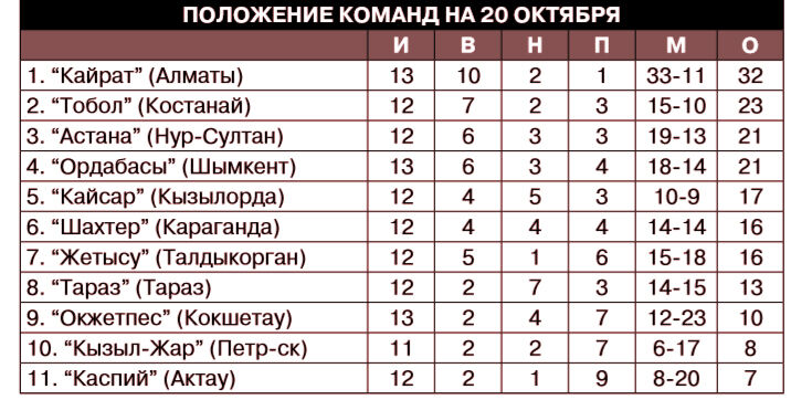 Не хочет сдавать своих позиций и шымкентский “Ордабасы”. Подопечные Кахабера ЦХАДАДЗЕ со счетом 1:0 победили карагандинский “Шахтер” и догнали по очкам “Астану”, которую на днях возглавил легендарный спартаковец Андрей ТИХОНОВ.