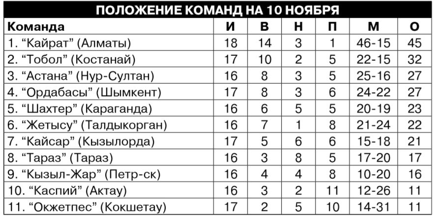 Другие матчи принесли следующие результаты: “Тараз” - “Шахтер” - 2:4, “Окжетпес” - “Жетысу” - 0:1. Игры следующего тура состоятся 21 ноября.