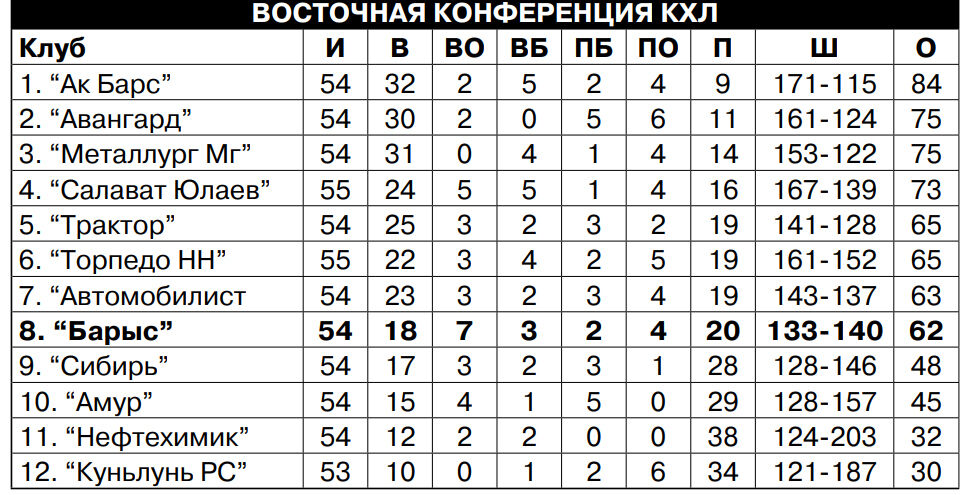 Из-за карантинных переносов у “Барыса” долгое время было преимущество перед другими командами “Востока”. Казалось бы, несколько игр в запасе, в конечном итоге казахстанцы сделают свое дело и с восьмого места прыгнут на пятое. Но, увы, все пропущенные матчи “Барыс” сыграл, сравнялся по этому показателю со своими главными соперниками, но так и не обошел их в турнирной таблице. А как могло быть иначе, если в последних пяти встречах была одержана лишь одна победа?
