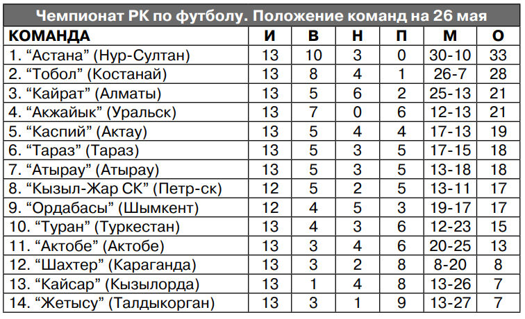Матчами в Шымкенте, Петропавловске, Уральске и Нур-Султане, где нынче базируется карагандинский “Шахтер”, завершился 13-й тур чемпионата Казахстана по футболу.