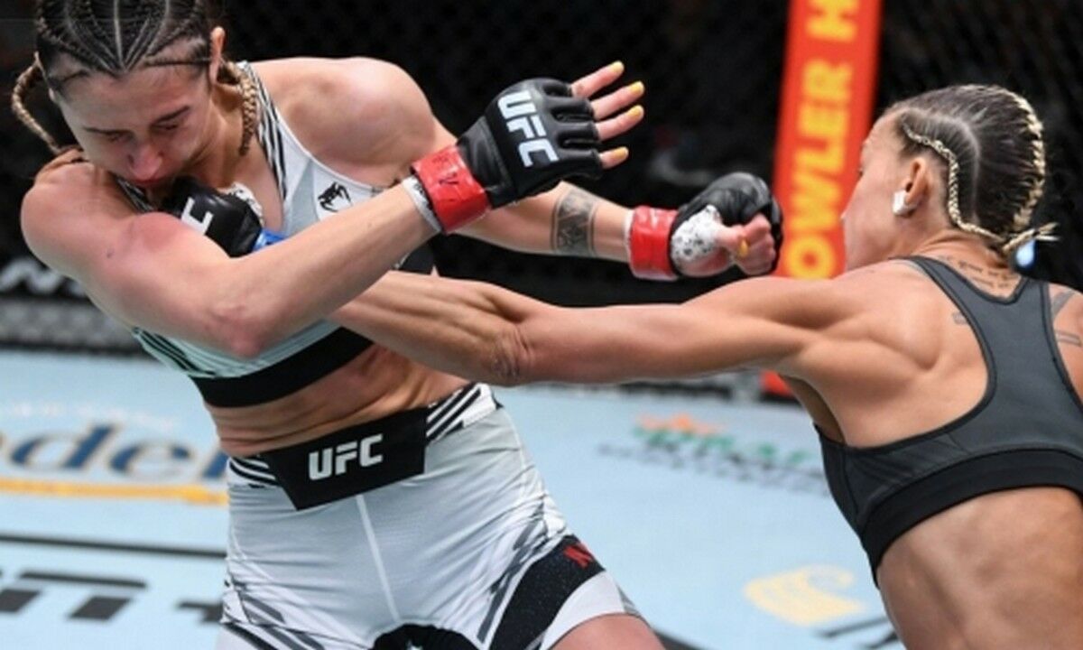 Казахстанка Мария АГАПОВА на турнире по смешанным единоборствам UFC Fight Night 194 в Лас-Вегасе победила колумбийку Сабину МАСО.