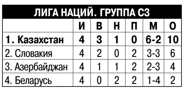 Обыграв в Нур-Султане сборную Словакии со счетом 2:1, казахстанские футболисты укрепили свое лидерство в группе С3 Лиги наций. После четырех туров у нашей дружины 10 очков. Так уверенно сборная Казахстана в Европе еще никогда не играла!