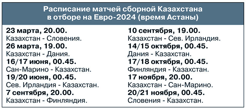 Стало известно расписание матчей отборочного турнира чемпионата Европы-2024 с участием сборной Казахстана.