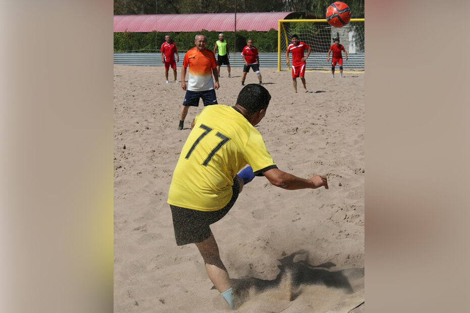 В Конаеве на спортивной базе им. Ивана ИОРДАНИДИ состоялся турнир среди ветеранов по пляжному футболу памяти легендарного кайратовца Виктора АБГОЛЬЦА.
