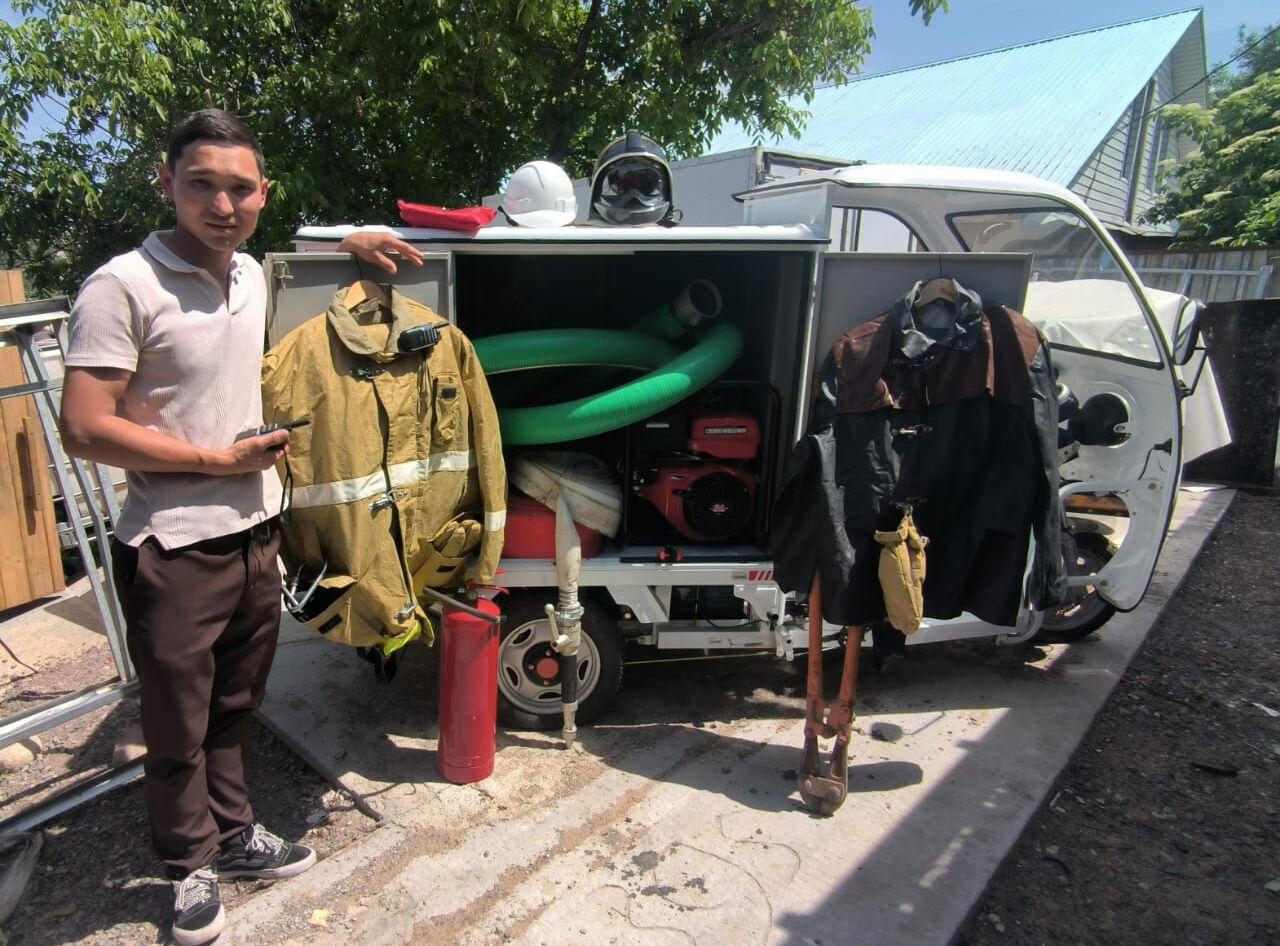 Житель дачного массива Медеуского района Алматы Асылан ИМАНБАЙ собрал свой передвижной “пункт” пожарной помощи, чтобы в экстренных случаях помогать соседям тушить пожары.